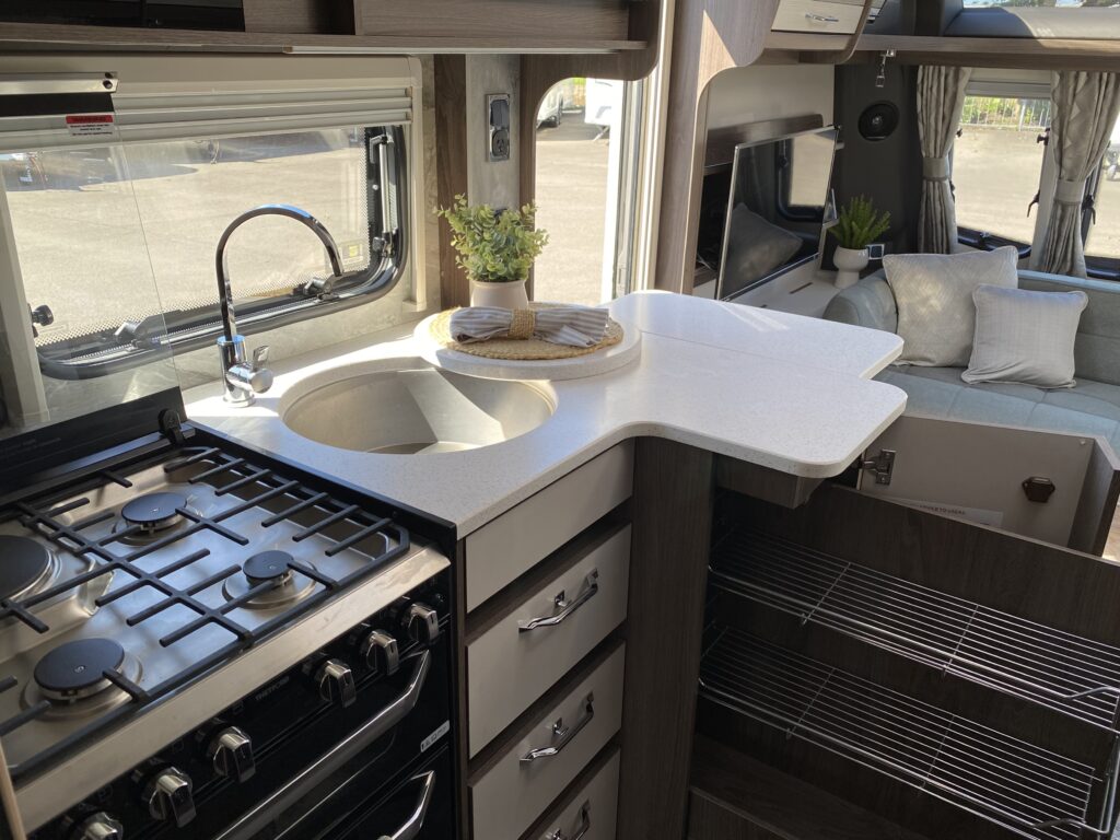 - Thetford gas oven and grill with 3 burner gas hob and electric hot plate