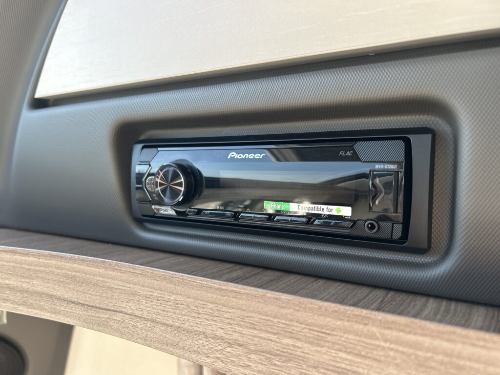 - Pioneer sound system – specifically designed for digital music & FM radio connects to your Apple or android