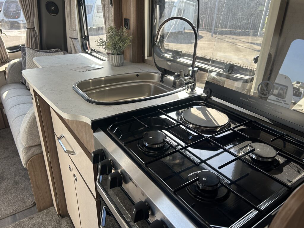 - Thetford gas oven and grill with 3 burner gas hob and electric hot plate